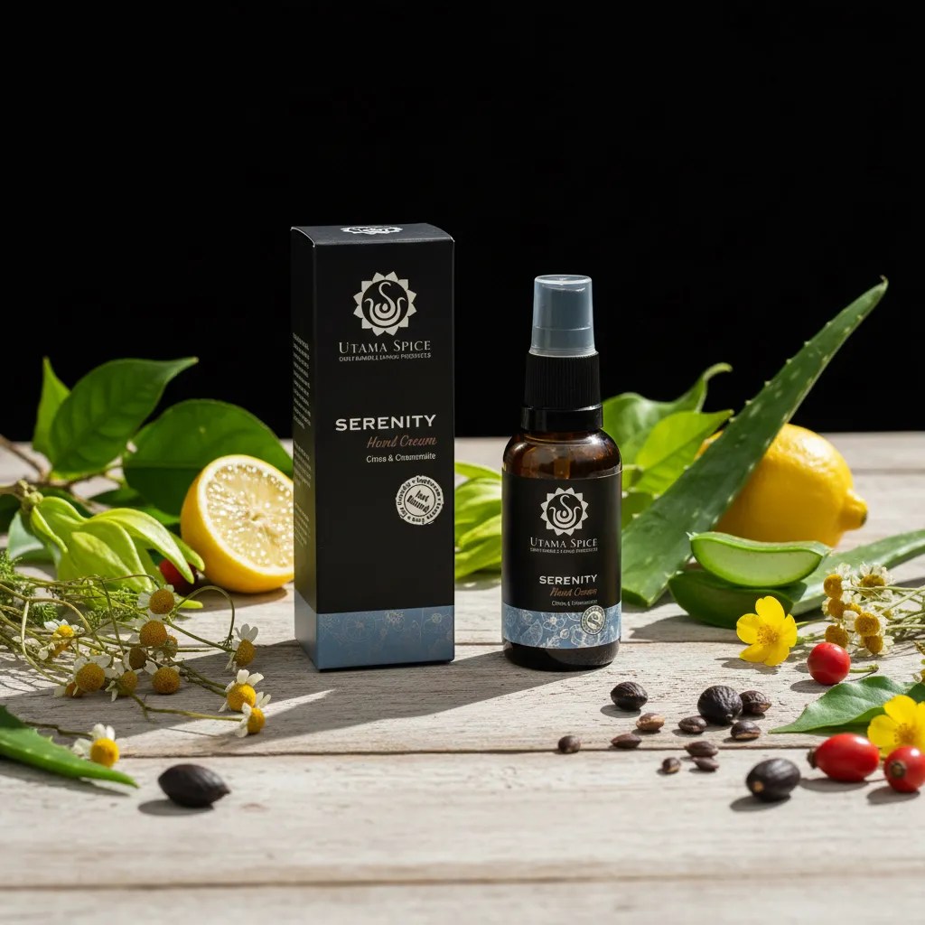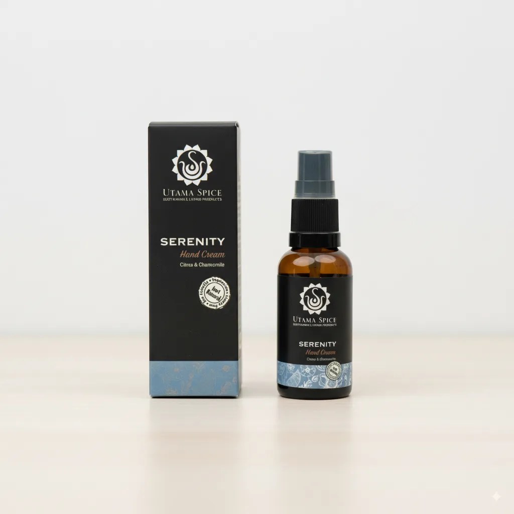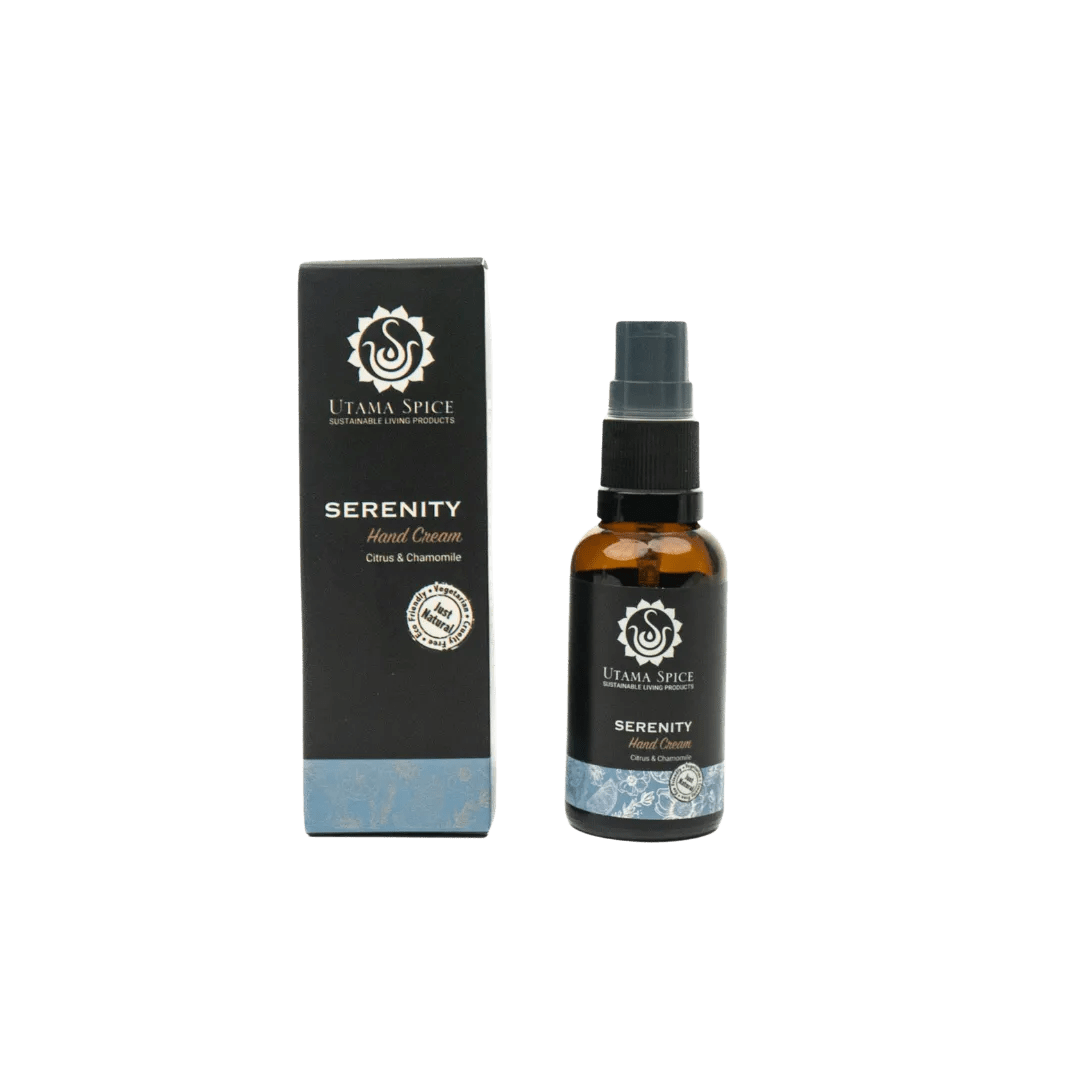 一日の終わりに、頑張った手肌へ。Utama Spiceのセレニティ ハンドクリームが、安らぎのひとときをお届けします。お疲れ気味の乾燥した手肌を、やさしくいたわり、うるおいを与え、すこやかに整えるために作られた、贅沢なナチュラル処方です。厳選された植物オイルと豊かな植物バターを配合した、深いうるおいをもたらすクリームが、手肌をやわらかく、なめらかに。心安らぐエッセンシャルオイルの香りが、あなたを穏やかなリラックスタイムへと誘います。