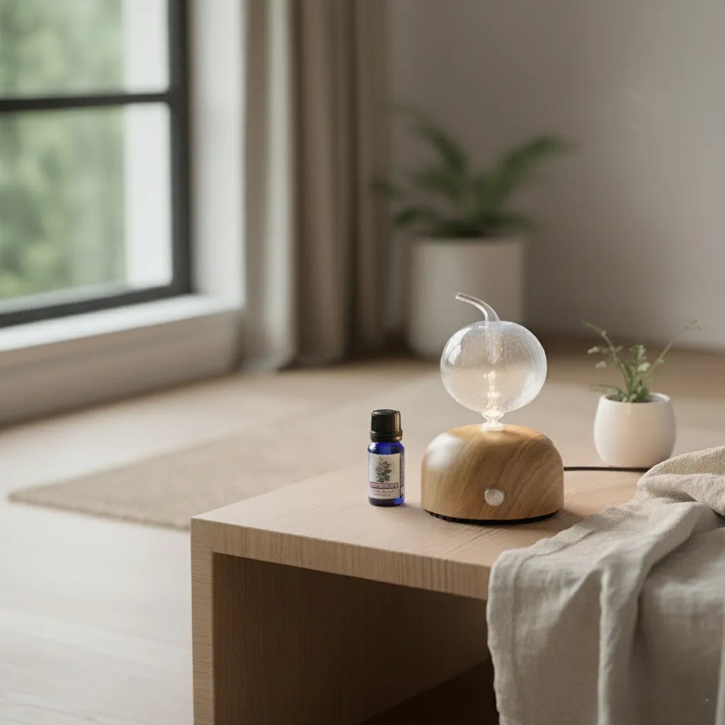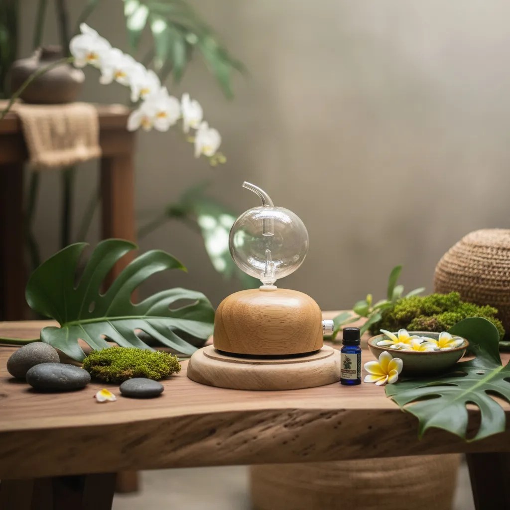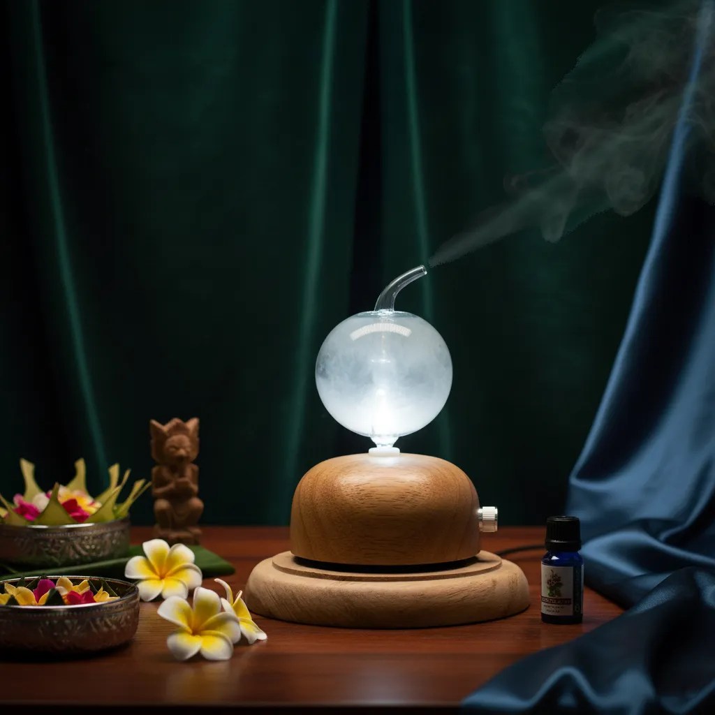 ベルヌーイの原理を利用して、加圧されたエッセンシャルオイルを、体に最も吸収されやすい直径1.5~5マイクロメートルの微細な霧状にするアロマディフューザーです。
