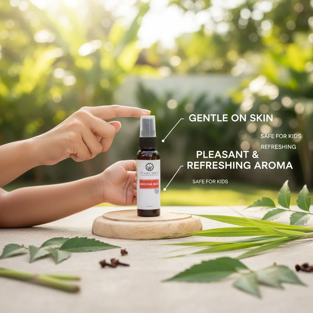 化学物質ベースの虫よけ剤とは異なり、べゴンバグは天然のエッセンシャルオイルをブレンドして、合成添加物、ディート(DEET)、または有害な毒素を使用せずに、効果的に虫を寄せ付けません。主成分であるシトロネラオイルは、そのフレッシュなレモンのような香りで、何世代にもわたって信頼されている天然の虫よけ成分です。これにニームオイル、クローブ、カユプテ、ミント、パチュリのエッセンシャルオイルを加え、肌を爽やかに保ち、ほのかな香りを残しながら、虫から守る保護シールドを作り出します。